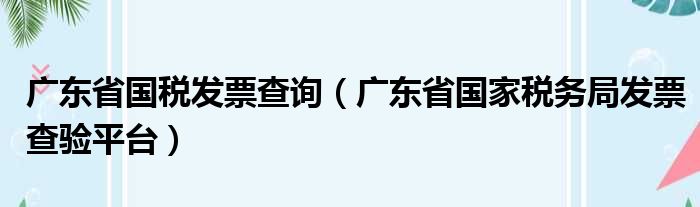 广东省国税发票查询(广东省国家税务局发票查验平台)