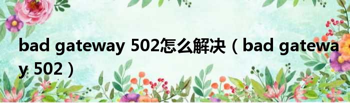 导读 大家好,小东方来为大家解答以上的问题。bad gateway 502怎么解决,bad gateway 502这个很多人还不知道,现在让我们一起来看看吧!1、连