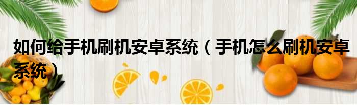 如何给手机刷机安卓系统(手机怎么刷机安卓系统)
