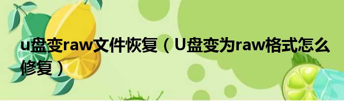 u盘变raw文件恢复(U盘变为raw格式怎么修复)