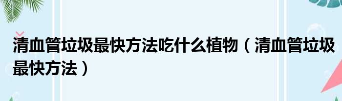 清血管垃圾最快方法吃什么植物(清血管垃圾最快方法)