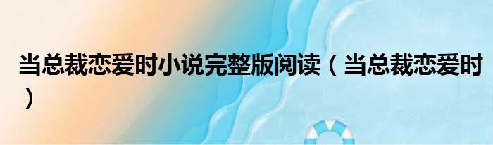 当总裁恋爱时小说完整版阅读(当总裁恋爱时)