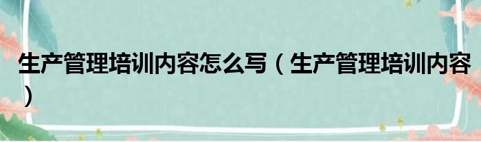 导读 大家好,小东方来为大家解答以上的问题。生产管理培训内容怎么写,生产管理培训内容这个很多人还不知道,现在让我们一起来看看吧!1、培训生