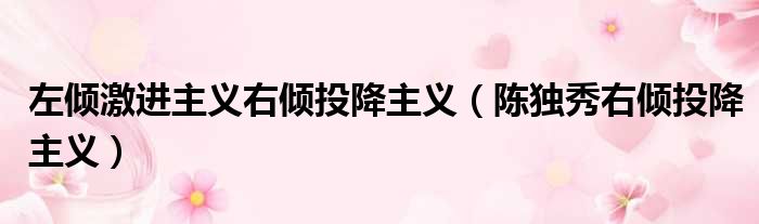 左倾激进主义右倾投降主义(陈独秀右倾投降主义)