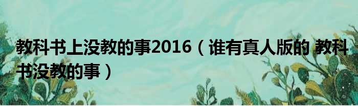 教科书上没教的事2016(谁有真人版的 教科书没教的事)
