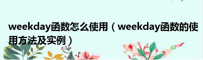 weekday函数怎么使用(weekday函数的使用方法及实例)