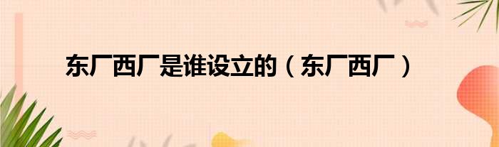 大家好,小东方来为大家解答以上的问题。东厂西厂是谁设立的,东厂西厂这个很多人还不知道,现在让我们一起来看看吧!
