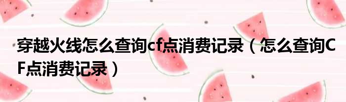 穿越火线怎么查询cf点消费记录(怎么查询CF点消费记录)