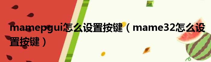 mamepgui怎么设置按键(mame32怎么设置按键)