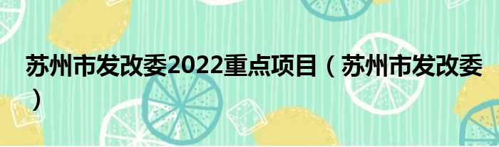 苏州市发改委2022重点项目(苏州市发改委)