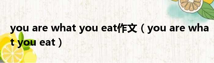 导读 大家好,小东方来为大家解答以上的问题。you are what you eat作文,you are what you eat这个很多人还不知道,现在让我们一起来看看