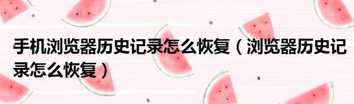 手机浏览器历史记录怎么恢复(浏览器历史记录怎么恢复)