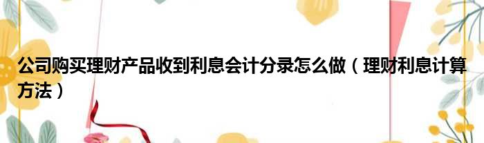 公司购买理财产品收到利息会计分录怎么做(理财利息计算方法)
