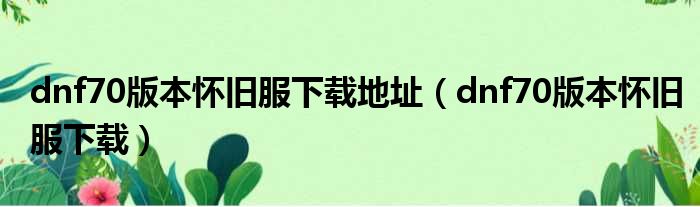 dnf70版本怀旧服下载地址(dnf70版本怀旧服下载)