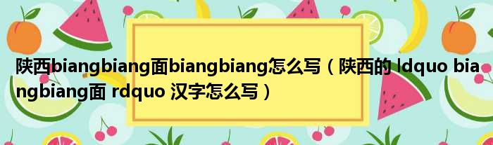 陕西biangbiang面biangbiang怎么写(陕西的 ldquo biangbiang面 rdquo 汉字怎么写)