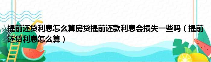 提前还贷利息怎么算房贷提前还款利息会损失一些吗(提前还贷利息怎么算)