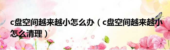 c盘空间越来越小怎么办(c盘空间越来越小怎么清理)