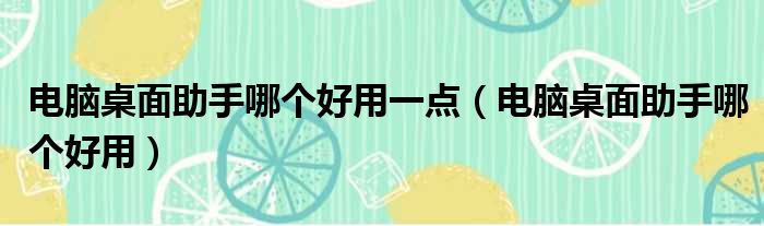 电脑桌面助手哪个好用一点(电脑桌面助手哪个好用)