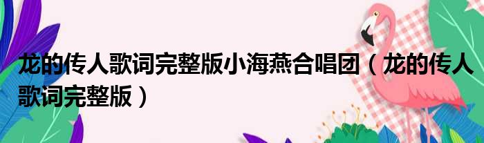龙的传人歌词完整版小海燕合唱团(龙的传人歌词完整版)