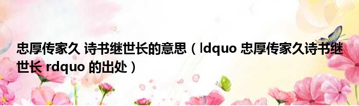 忠厚传家久 诗书继世长的意思(ldquo 忠厚传家久诗书继世长 rdquo 的出处)