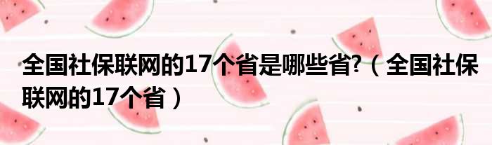 全国社保联网的17个省是哪些省?(全国社保联网的17个省)