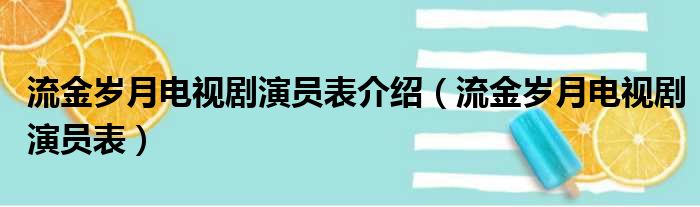 流金岁月电视剧演员表介绍(流金岁月电视剧演员表)