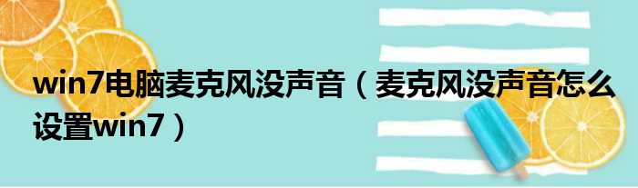 win7电脑麦克风没声音(麦克风没声音怎么设置win7)