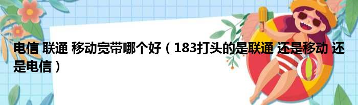 导读 大家好,小东方来为大家解答以上的问题。电信 联通 移动宽带哪个好,183打头的是联通 还是移动 还是电信这个很多人还不知道,现在让我们