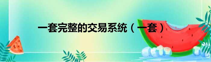 一套完整的交易系统(一套)