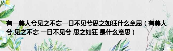 有一美人兮见之不忘一日不见兮思之如狂什么意思(有美人兮 见之不忘 一日不见兮 思之如狂 是什么意思)