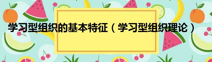 学习型组织的基本特征(学习型组织理论)