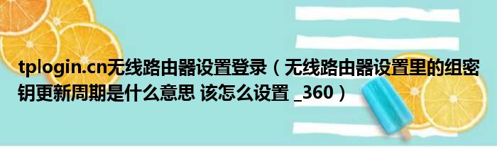 tplogin.cn无线路由器设置登录(无线路由器设置里的组密钥更新周期是什么意思 该怎么设置 _360)