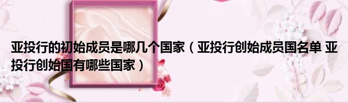 亚投行的初始成员是哪几个国家(亚投行创始成员国名单 亚投行创始国有哪些国家)