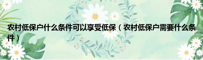 农村低保户什么条件可以享受低保(农村低保户需要什么条件)