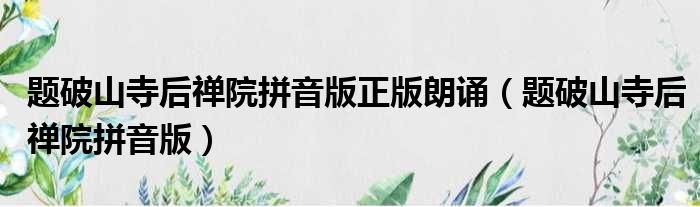 题破山寺后禅院拼音版正版朗诵(题破山寺后禅院拼音版)