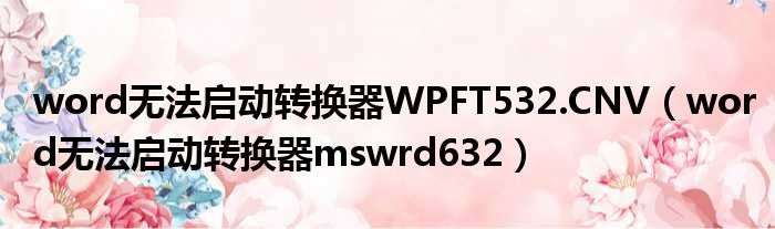 word无法启动转换器WPFT532.CNV(word无法启动转换器mswrd632)