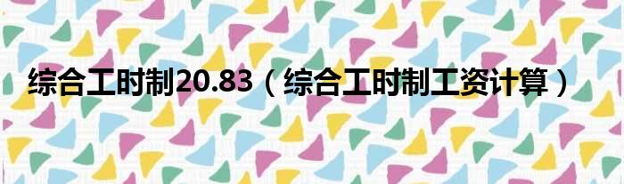大家好,小东方来为大家解答以上的问题。综合工时制20.83,综合工时制工资计算这个很多人还不知道,现在让我们一起来看看吧!