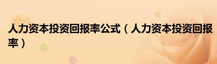 导读 大家好,小东方来为大家解答以上的问题。人力资本投资回报率公式,人力资本投资回报率这个很多人还不知道,现在让我们一起来看看吧!1、人力