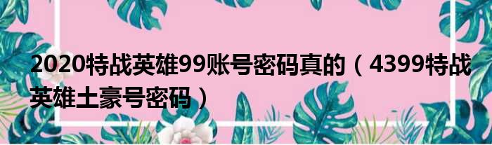2020特战英雄99账号密码真的(4399特战英雄土豪号密码)