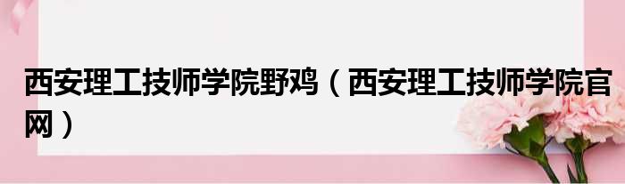 西安理工技师学院野鸡(西安理工技师学院官网)