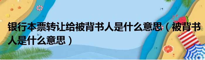 银行本票转让给被背书人是什么意思(被背书人是什么意思)