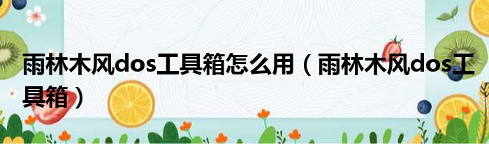 雨林木风dos工具箱怎么用(雨林木风dos工具箱)