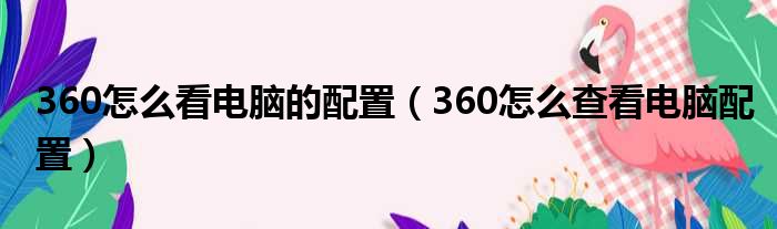 360怎么看电脑的配置(360怎么查看电脑配置)