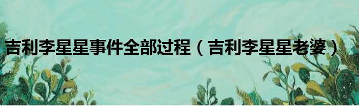 导读 大家好,小东方来为大家解答以上的问题。吉利李星星事件全部过程,吉利李星星老婆这个很多人还不知道,现在让我们一起来看看吧!1、其实就是