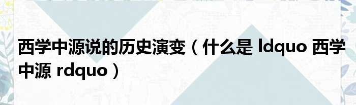 西学中源说的历史演变(什么是 ldquo 西学中源 rdquo)