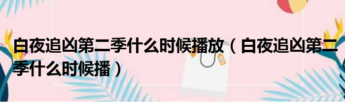 大家好,小东方来为大家解答以上的问题。白夜追凶第二季什么时候播放,白夜追凶第二季什么时候播这个很多人还不知道,现在让我们一起来看看吧!