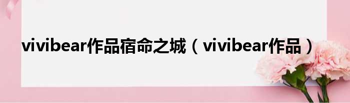 大家好,小东方来为大家解答以上的问题。vivibear作品宿命之城,vivibear作品这个很多人还不知道,现在让我们一起来看看吧!