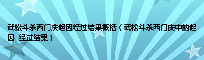 武松斗杀西门庆起因经过结果概括(武松斗杀西门庆中的起因 经过结果)