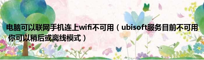 导读 大家好,小东方来为大家解答以上的问题。电脑可以联网手机连上wifi不可用,ubisoft服务目前不可用 你可以稍后或离线模式这个很多人还不知道