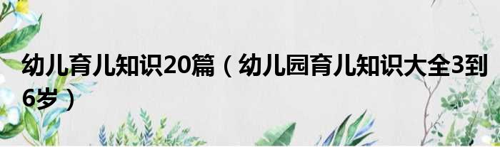 幼儿育儿知识20篇(幼儿园育儿知识大全3到6岁)